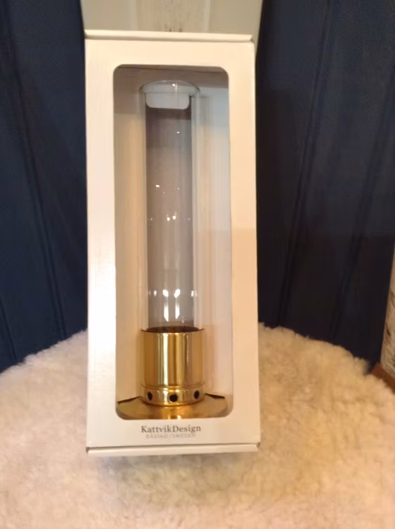 Tidlös, vacker & smart formgivning med luftinsläpp som innebär att ljusets låga brinner utan att sota. Foten är stabil och håller ljusstaken stående även när det blåser mycket. Glasets spegling av ljuslågan förstärker stämningen.