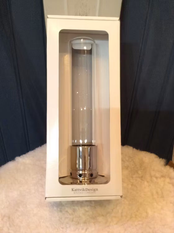 Tidlös, vacker & smart formgivning med luftinsläpp som innebär att ljusets låga brinner utan att sota. Foten är stabil och håller ljusstaken stående även när det blåser mycket. Glasets spegling av ljuslågan förstärker stämningen.