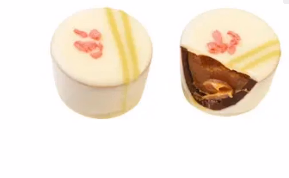 Ingredienser: Socker, kakaosmör, kakaomassa, GRÄDDE, MJÖLKPULVER, 6,0% jordgubbslikör, SKUMMJÖLKSPULVER, 3,1% rabarber puré, glukossirap, vatten, SMÖR, 0,9% jordgubbar, syra (citronsyra), invertsockersirap, emulgeringsmedel: SOJALECITIN, 0,4% jordgubbsjuicekoncentrat, fruktos, etylalkohol, naturlig arom, förtjockningsmedel (modifierad stärkelse, natriumalginat), svart morot koncentrat, morot koncentrat, färgad mat (extrakt av fläderfrukt), Bourbon-vaniljpulver, matcha grönt te, modifierad stärkelse.