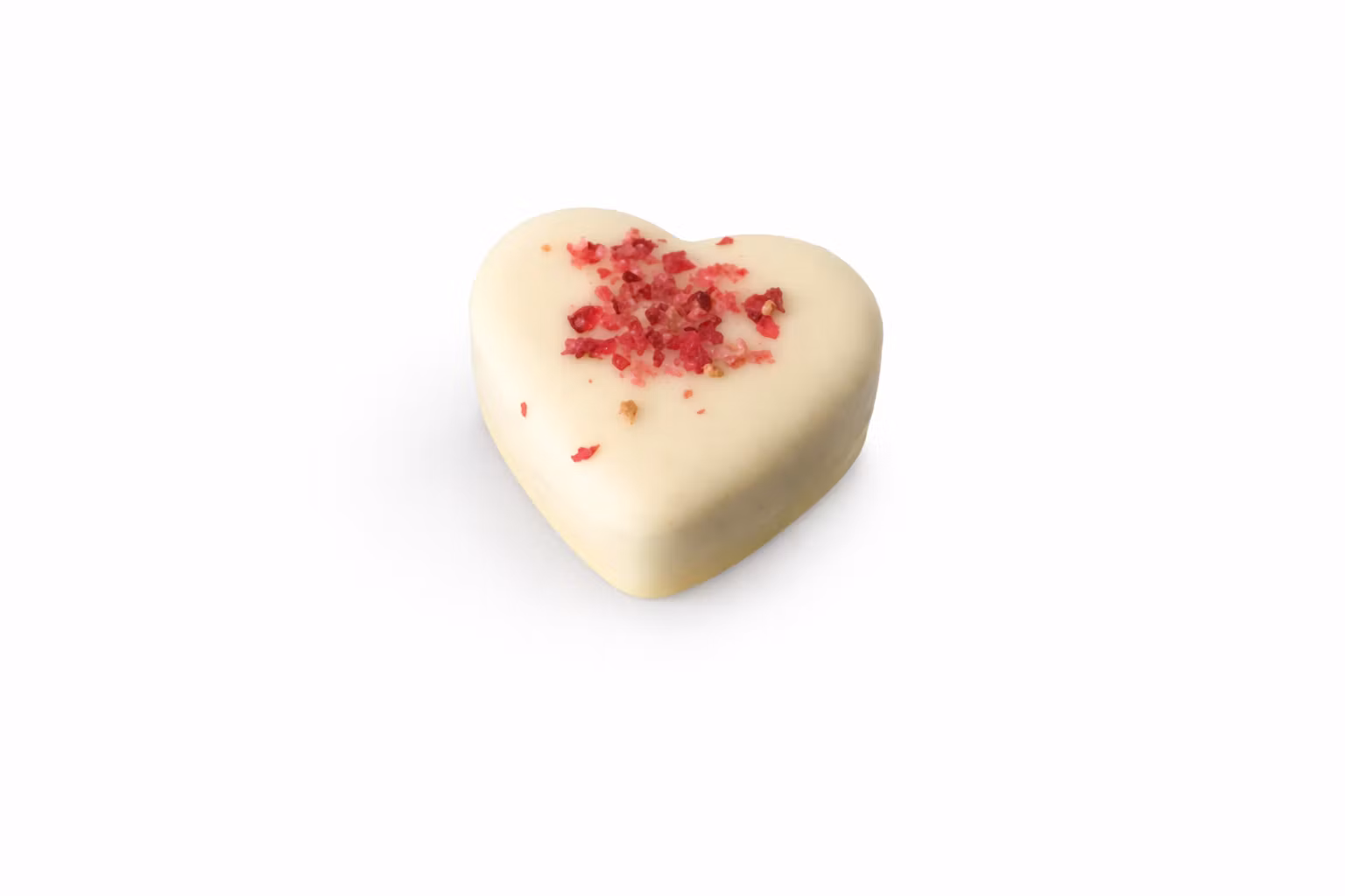 Ingredienser: Socker, kakaosmör, MJÖLKPULVER, GRÄDDE (15%), invertsockersirap, fuktighetsbevarande medel: sorbitol sirap; SMÖR, glukos, jordgubbar ( <1%), kakaomassa, emulgator: SOJALECITIN; koncentrerad juice (jordgubbar (<1%)), tranbär, rödbetasaftkoncentrat, vaniljextrakt, surgörare: citronsyra; naturlig arom, förtjockningsmedel: pektin; antioxidant: askorbinsyra.