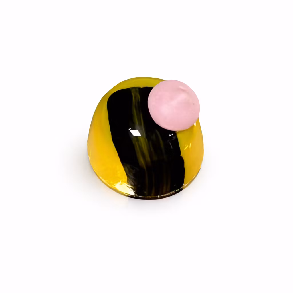 Ingredienser: Socker, kakaosmör, MJÖLKPULVER, SKUMMJÖLKSPULVER, GRÄDDE, SMÖR, invertsocker sirap, glykos, kakaopulver, emulgeringsmedel (SOJALECITIN), vaniljextrakt, färgämne (E104*, E153), sirap, bourbon Madagaskar vaniljextrakt, uttömda vaniljfrön, bananessence (vatten, propylenglykol, naturliga och artificiella smakämnen, gummi arabicum, xantangummi), maränger (hydrolyserat mjölkprotein (med SULFIT), arom (med MJÖLK), syra E330), färgämne (E120)).