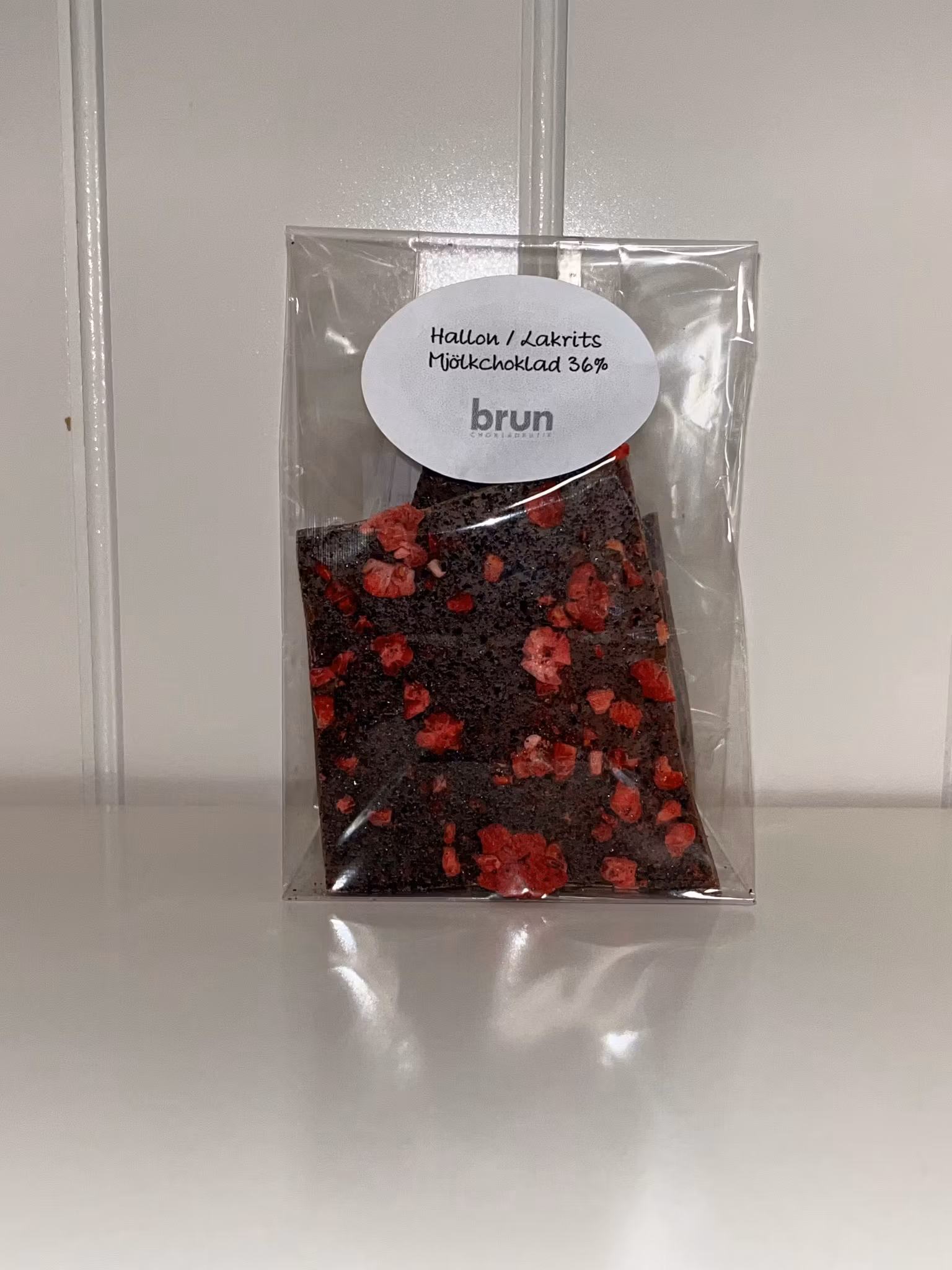 Vår egen: Chokladbräck Hallon & Lakrits i 36% mjölkchoklad