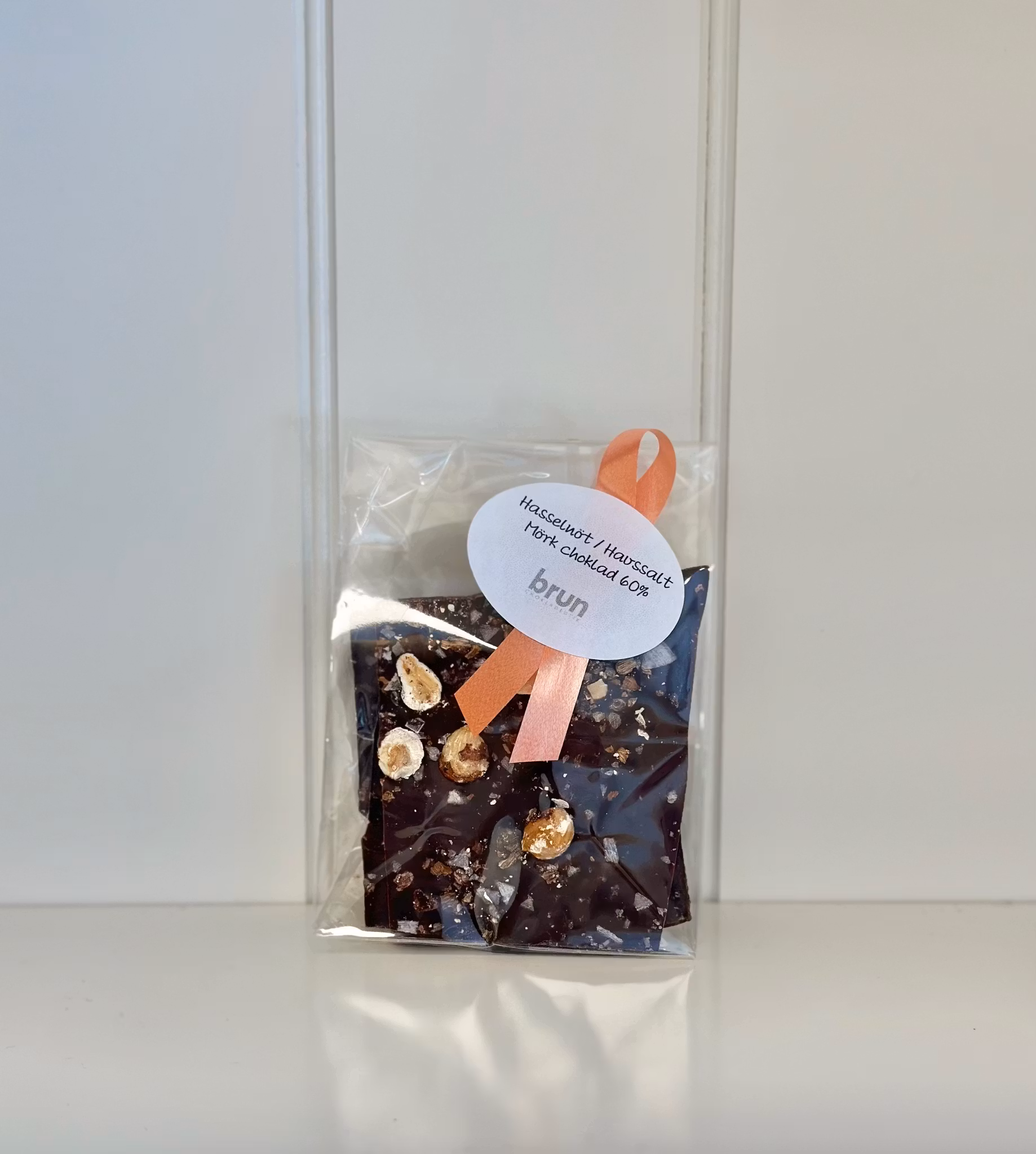 Vår egen: Chokladbräck med Hasselnötter & havssalt i 75% mörk choklad