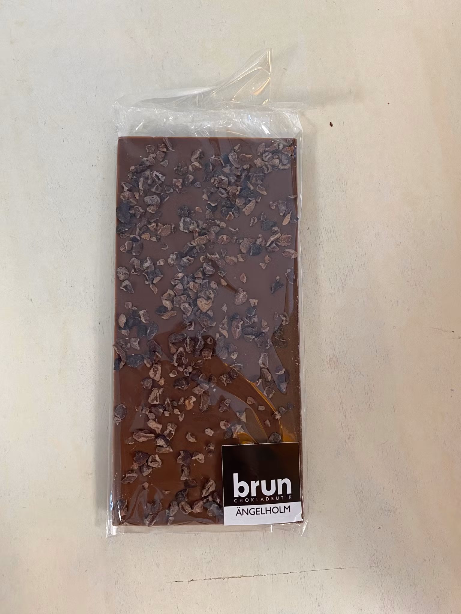 Vår egen: Mjölkchokladkaka med kakaonibs 36%