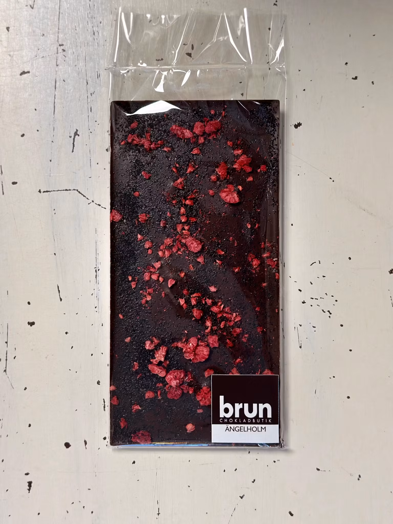 Vår egen: Mörk chokladkaka med hallon & lakrits 60%