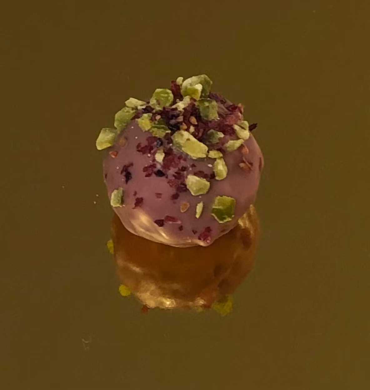 Ingredienser: Socker, kakaosmör, GRÄDDE, MJÖLKPULVER, fuktighetsbevarande medel: sorbitol sirap; invertsocker sirap, skummat MJÖLKPULVER, kakaomassa, SMÖR, invertsocker, glukos, tranbär, PISTAGENÖTTER, koncentrerad juice (passionsfrukt), naturligt passionsfruktsarom, emulgator: SOJALECITIN, surgörare: citronsyra, vaniljextrakt.