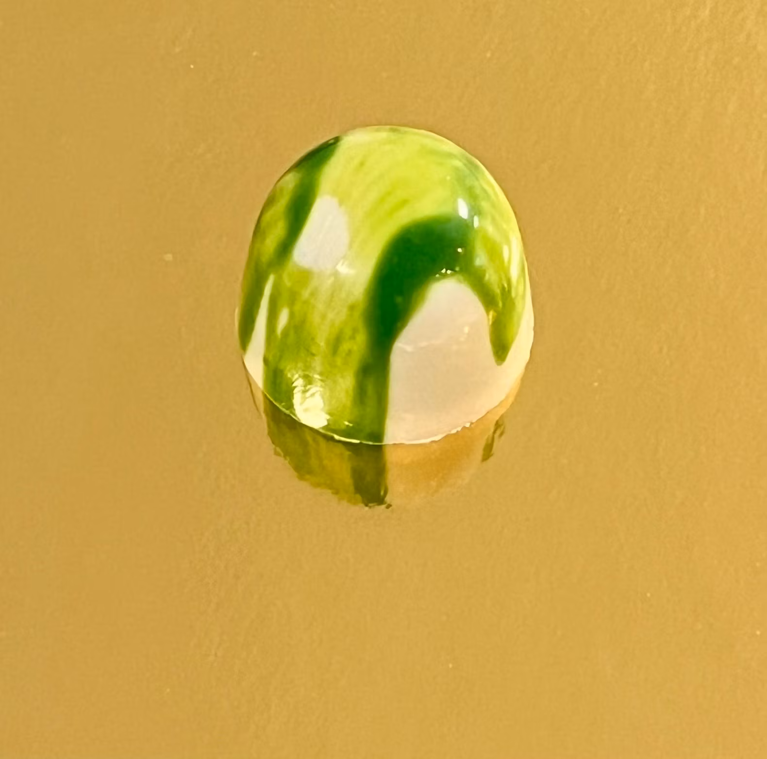 Ingredienser: Rörsocker, kakaosmör, kakaomassa, kokosmjöl, vanilj, socker, PISTAGENÖTTER, MANDEL, färgämne (E104*, E133).